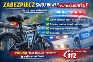 Sezon rowerowy w pełni, co widać na drogach i ścieżkach rowerowych powiatu piskiego. Zwiększa się też zagrożenie kradzieżami jednośladów. Chcąc zapobiec utracie roweru, warto go odpowiednio zabezpieczyć. Należy też unikać sytuacji, w której nasz jednoślad pozostawiony będzie, choćby na chwilę, bez odpowiedniej ochrony, np. w klatce schodowej czy pod sklepem. Z obserwacji policjantów wynika, że rowery giną najczęściej z tych właśnie miejsc. Co zatem zrobić, by uchronić nasz rower przed kradzieżą? Podpowiadają piscy policjanci.