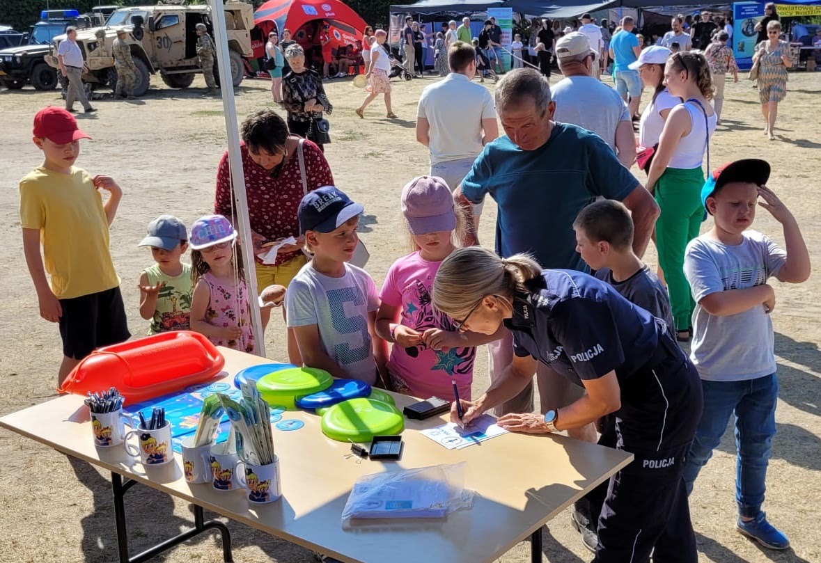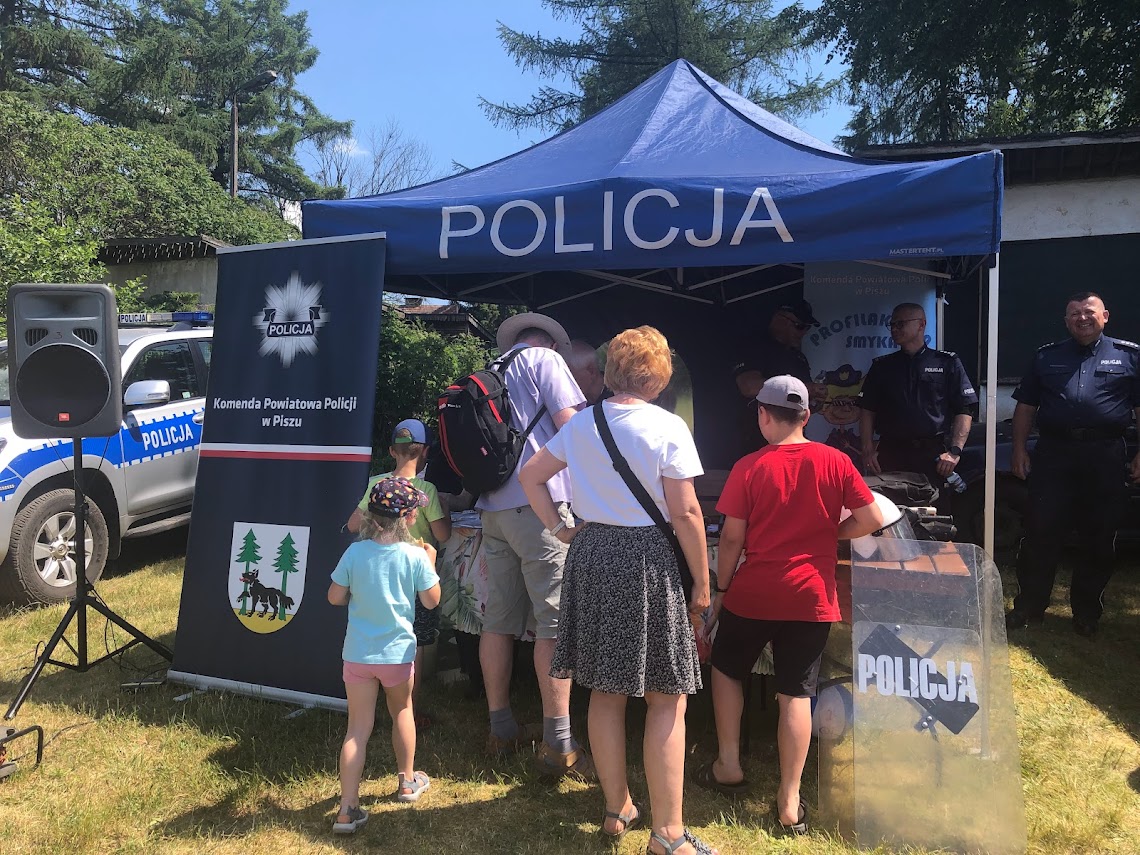 Dwa dni później (11 czerwca br.) policjanci z Komedy Powiatowej Policji w Piszu uczestniczyli w festynie rodzinnym, który odbył się w Piszu. Organizatorem było Powiatowe Centrum Pomocy Rodzinie. Piknik odbył się w ramach XXV Warmińsko – Mazurskich Dni Rodziny. Na tym pikniku swoje stoisko promocyjne mieli też policjanci. Funkcjonariusze przypominali dzieciom i dorosłym o bezpiecznym wypoczynku nad wodą. Zorganizowali loterię fantową dla najmłodszych, która cieszyła się ogromnym zainteresowaniem. Do wylosowania były m.in. opaski bezpieczeństwa, bojka ratunkowa, książeczko „Na ratunek Poli” oraz kubeczki z wizerunkiem głównej bohaterki.