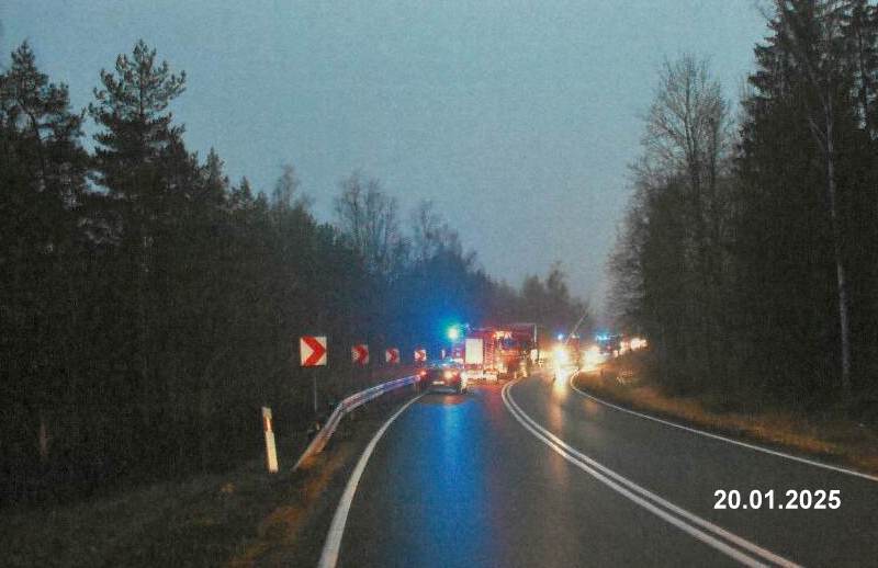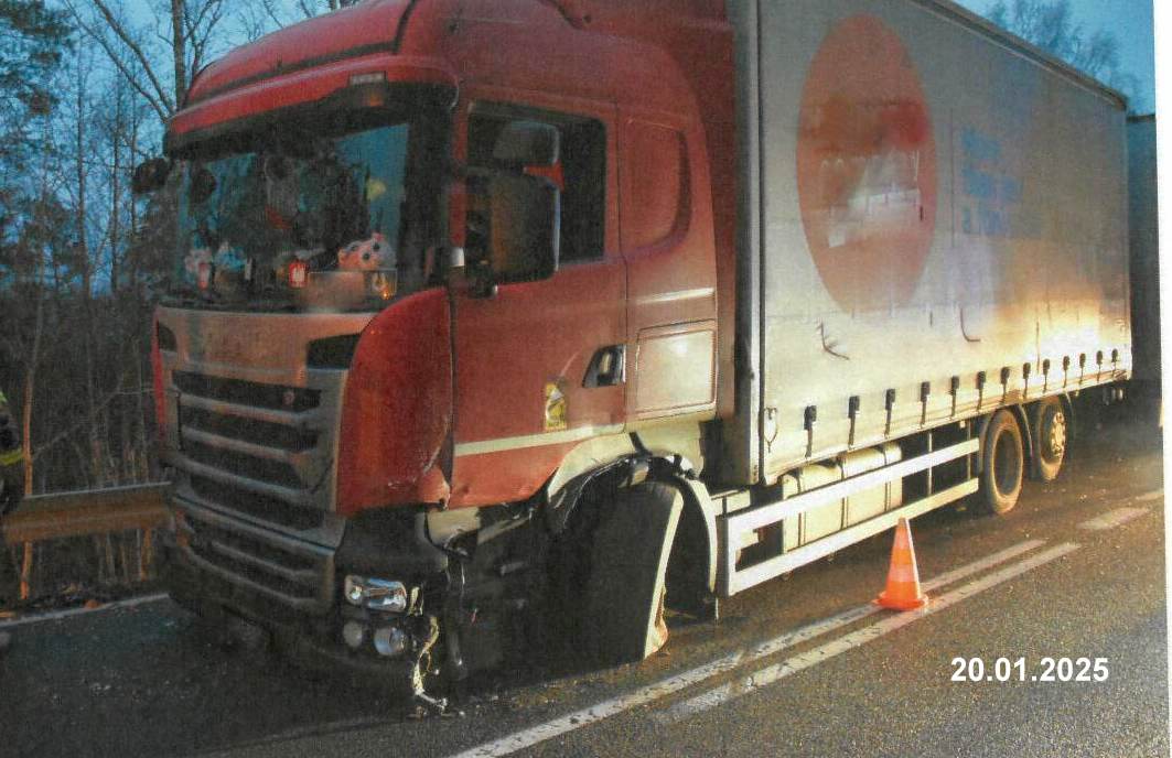Wracamy do groźnie wyglądającego zdarzenia drogowego, do którego doszło 20 stycznia 2025 roku po godz. 15.00 na drodze krajowej nr 63 między Piszem a Orzyszem. Na odcinku Szczechy Wielkie- Kociołek Szlachecki kierujący samochodem marki Honda zjechał na przeciwległy pas ruchu. Uderzył w jadący z przeciwka pojazd ciężarowy marki Scania jadący z naczepą. Do zdarzenia doszło na łuku drogi. Na szczęście nikt nie doznał obrażeń.