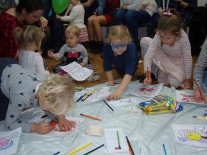 Najmłodsi podczas zabawy nie tylko tańczyli, ale także rysowali postać Mikołaja, robili tradycyjny choinkowy łańcuch, ale także rzucali się papierowymi śnieżkami, co sprawiło im niesamowitą frajdę. W przerwie na dzieci czekał słodki poczęstunek.