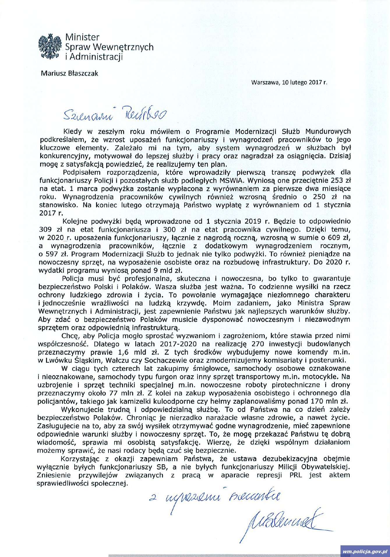 MSWiA: List do funkcjonariuszy i pracowników cywilnych Policji - Aktualności -