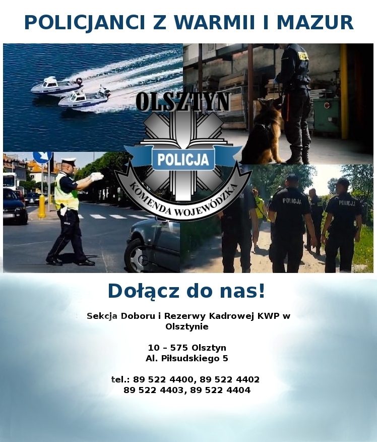 Komenda Powiatowa Policji w Piszu prowadzi nabór do służby w Policji. Dysponujemy 10 wakatami. Do wstąpienia w nasze szeregi zachęcamy szczególnie mieszkańców naszego powiatu, którzy swoje losy wiązaliby z piską Policją. Szukamy osób mających obywatelstwo polskie, co najmniej średnie wykształcenie, nie skazanych prawomocnym wyrokiem sądu za przestępstwo lub przestępstwo skarbowe. Nie ma ograniczeń jeśli chodzi o wiek kandydata. Oferujemy za to ciekawą pracę.