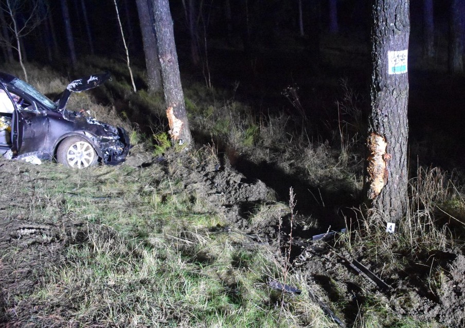 W dniu 1 stycznia br. po godz. 3.00 policjanci otrzymali informację o zdarzeniu drogowym na trasie Jabłoń- Wiartel, gdzie samochód uderzył w drzewo.