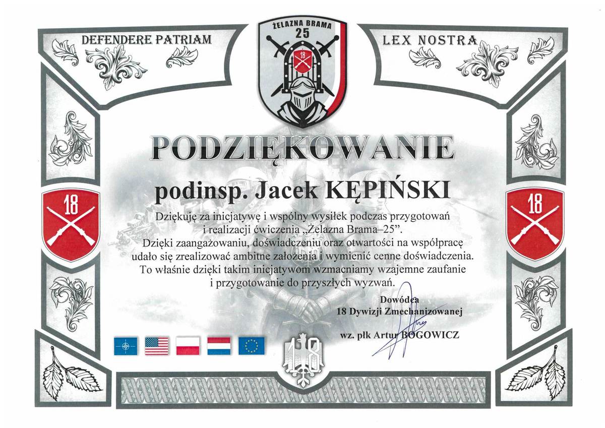 Podziękowanie z 18 Dywizji Zmechanizowanej -08.10.2025 - PODZIĘKOWANIA -